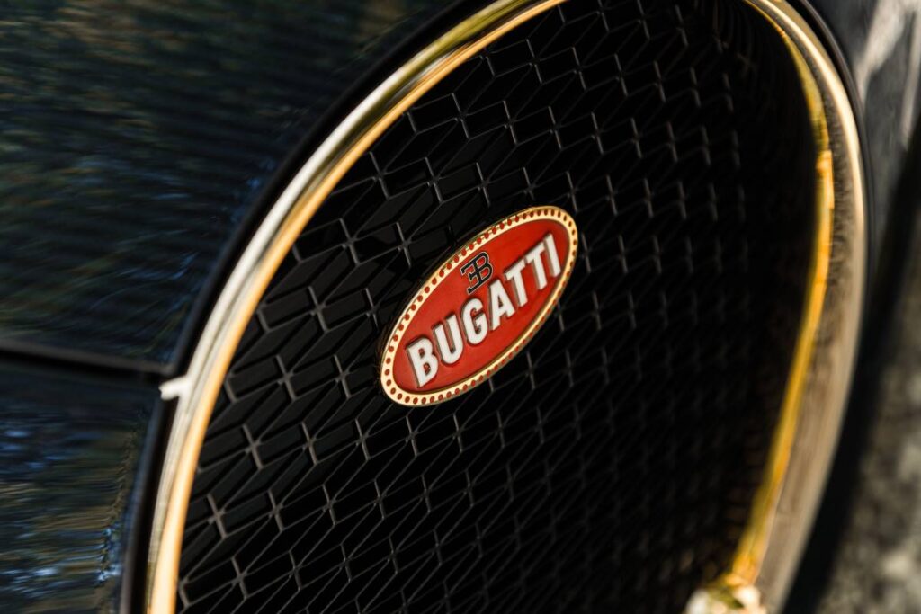 También es la primera vez que el famoso emblema de Bugatti brilla en oro de alta calidad en la parrilla de herradura.